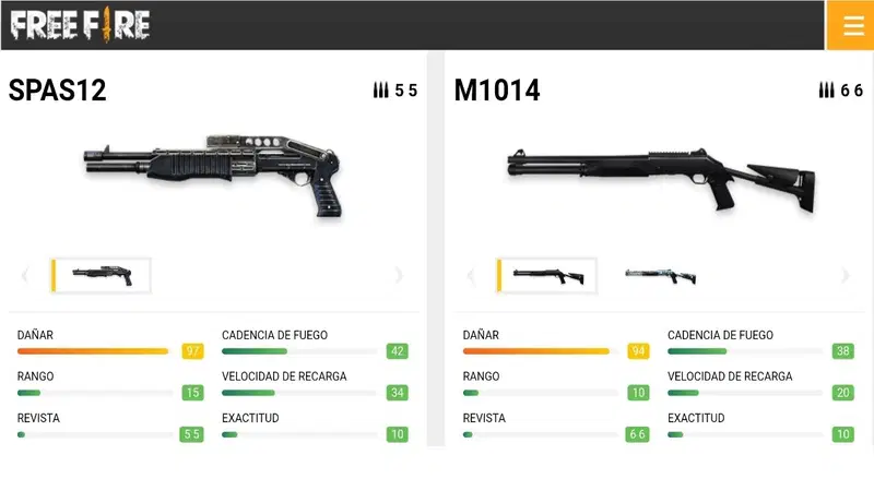 Elección de armas para pegar todo rojo en Free Fire